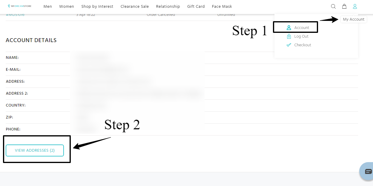 - Click on view address details button, Here you can edit the contact number and address details.
